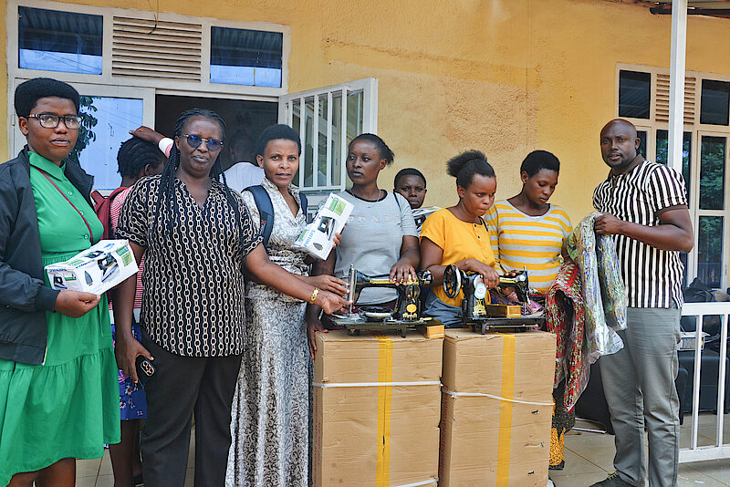Umuyobozi Nshingwabikorwa w'Akarere ka Nyarugenge Wungirije, Madamu Uwamahoro Genevieve ari kumwe n'Umufatanyabikorwa DUHAMIC ADRI bashyikirije urubyiruko rugera kuri 540 rwafashijwe kwiga imyuga mu Karere kacu ka Nyarugenge ibikoresho by'imyuga birimo: